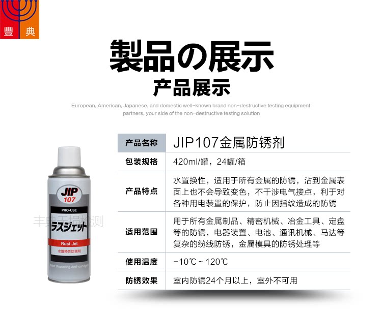 1.水置换性,适合用于所有金属的防锈,沾到金属表面上也不会导致变色。
