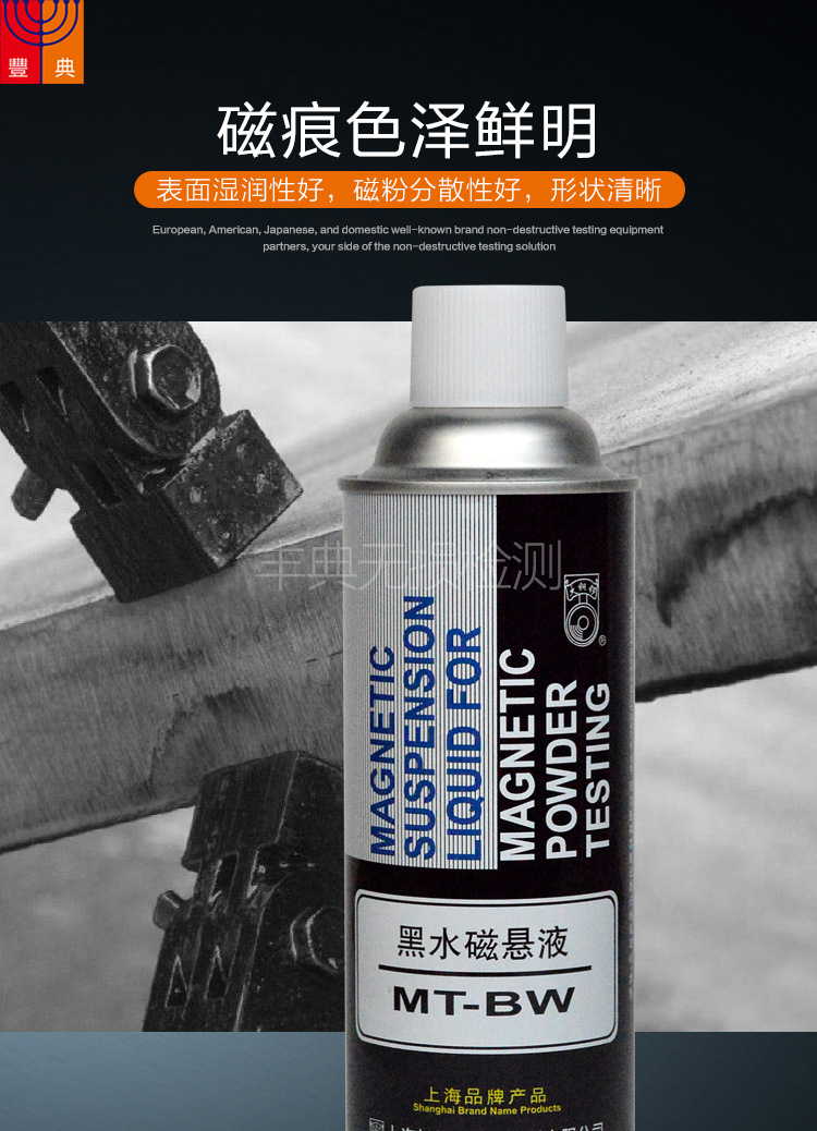 MT-BW黑水磁悬液对工件表面湿润性好,磁粉分散性好,形成磁痕色泽鲜明。形状清晰
